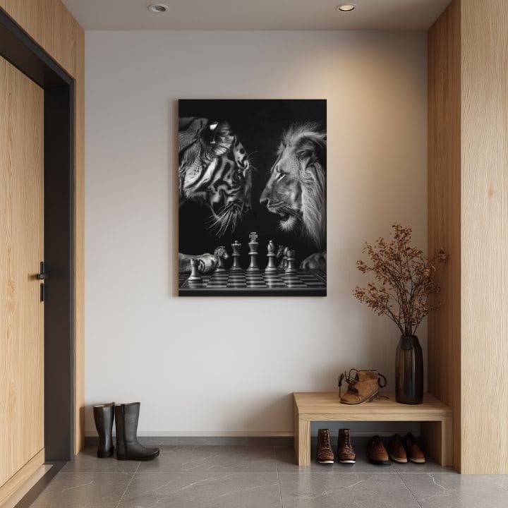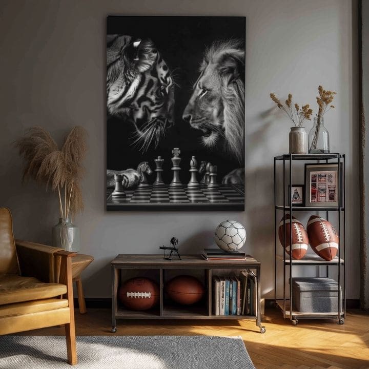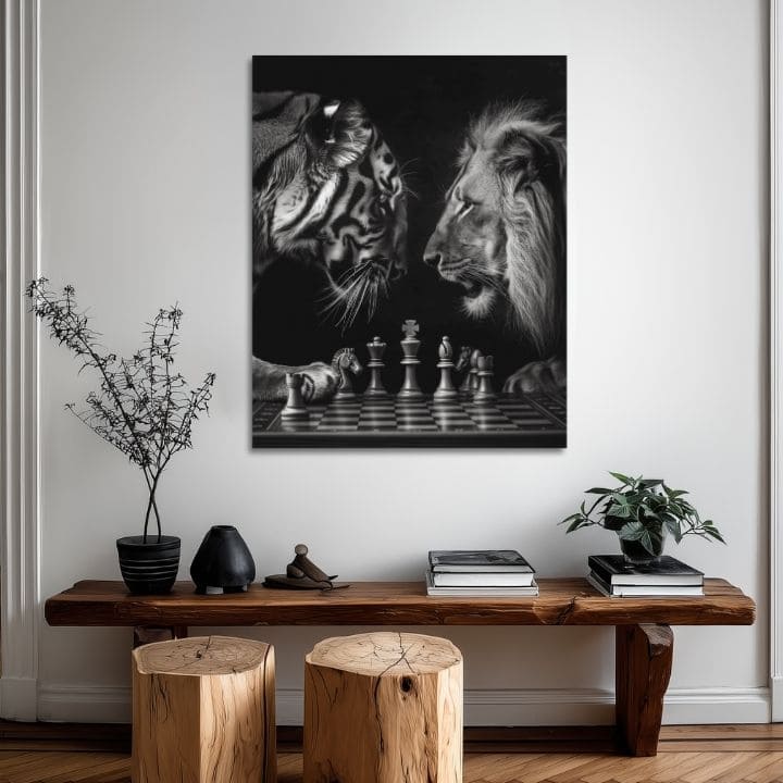 Slika na platnu Lav i tigar - Šahovska strategija | 40x50 cm